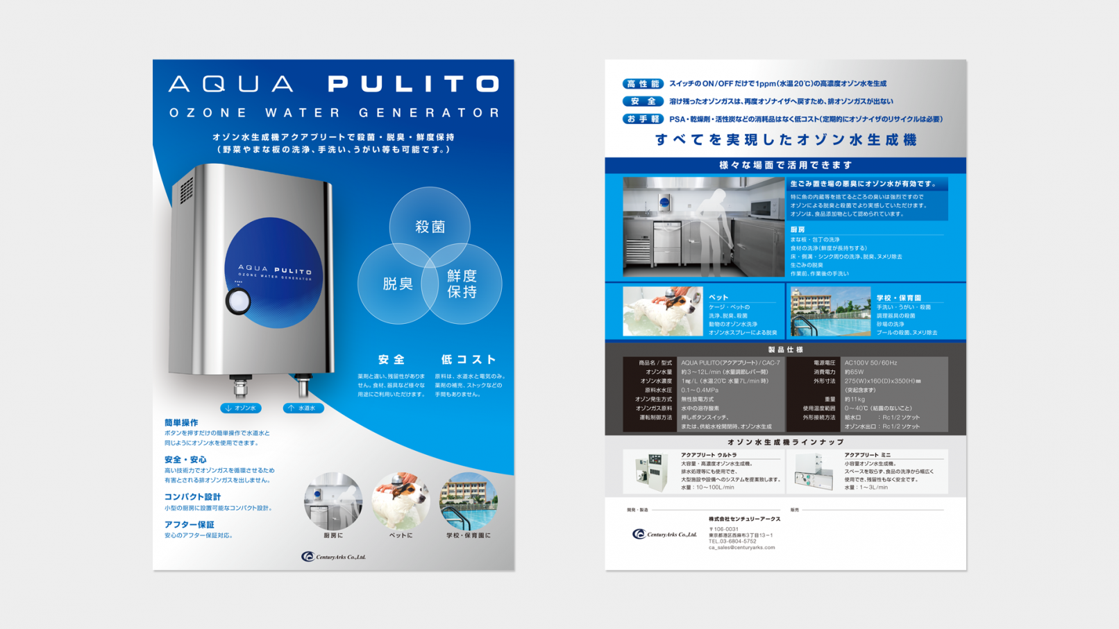 オゾン水生成機のロゴデザイン・ラベルデザイン・パンフレットデザインを担当しました。